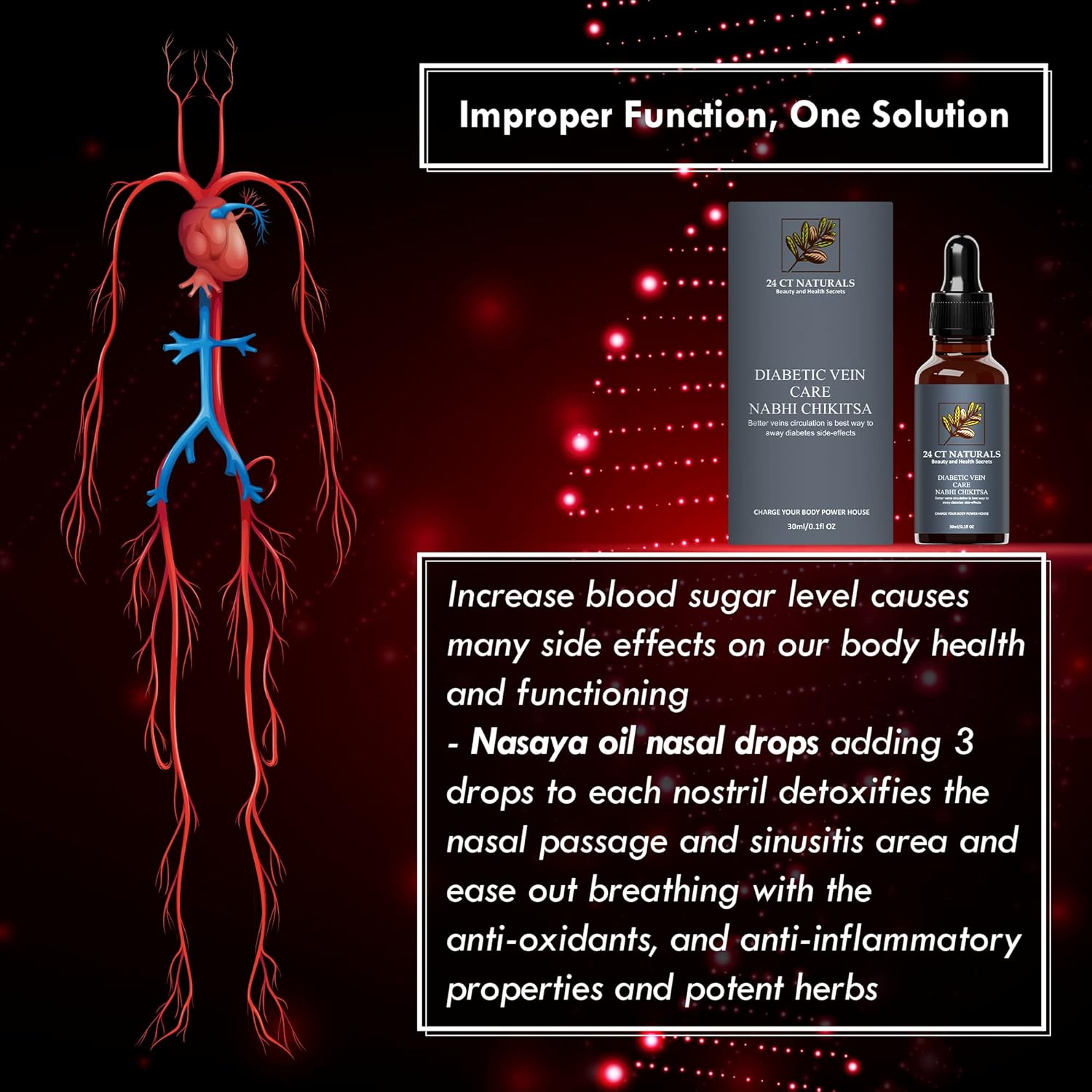 Supports complete vein health for proper functioning of heart, eyes, kidneys, and leg veins