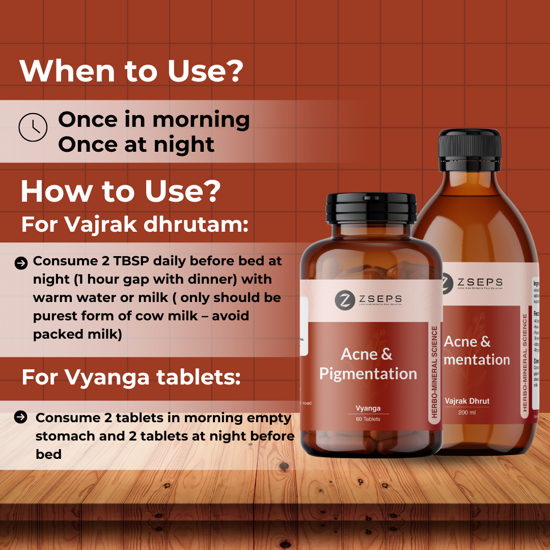 Vajrak dhrutam is a natural medicated ghritam works firstly on balancing vata dosha as when vata dosha is imbalanced it imbalances bhajraka pitta residing on our skin’s layer of the skin working on boosting metabolism and maintaining skin’s immunity, causing low of skin immunity tends to produce more melanin during uv rays effect. Causing your skin more tanned and pigmented. So it balances vata dosha completely and as it contains carotene, short chain fatty acids, vitamin C, Vitamin E and relevant antioxidants helps in fighting with oxidative radicals, wrinkles and ageing and controls excess melanin production and helps in increasing skins natural lubrication, hydration and nourishment.